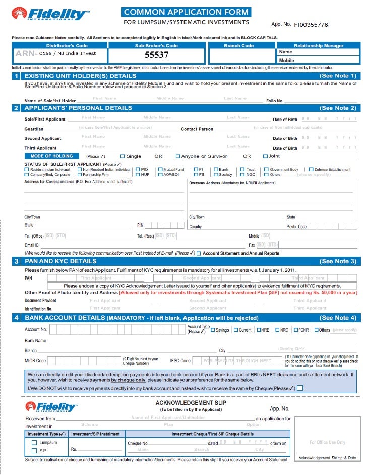 Fidelity mutual fund common application form