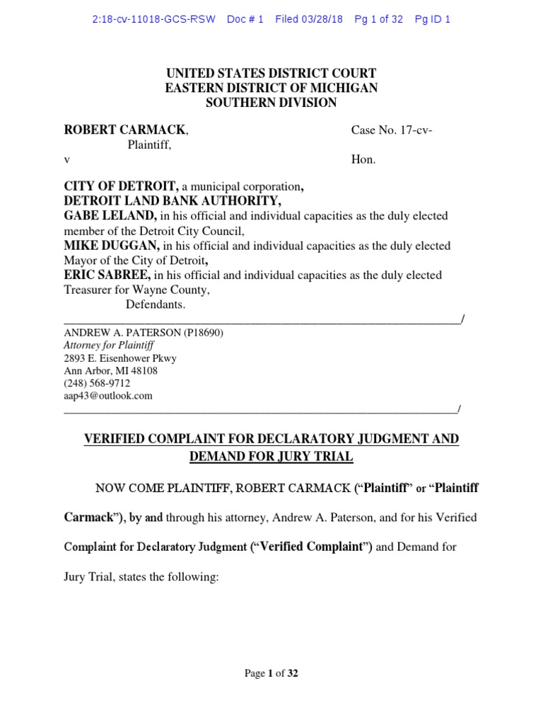 Rober Carmack v. Detroit Land Bank Authority, Detroit & Mayor Mike
